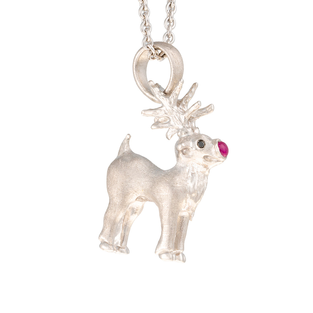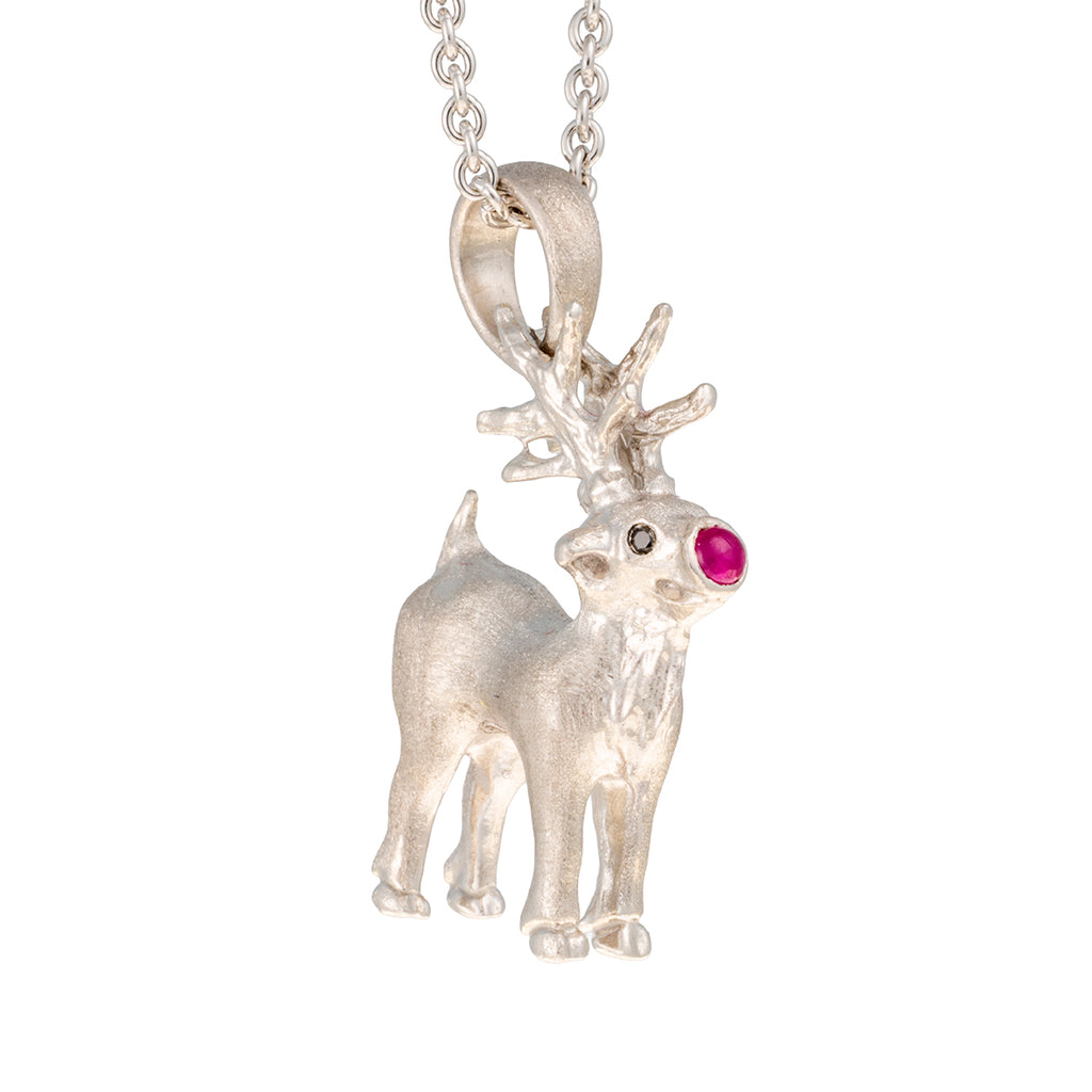 TuaMeas Rudolf guider også og med den smukke cabochon formede grønlandske rubin som næse, fører han dig også til lykke, held, kærlighed, kreativitet og styrke.